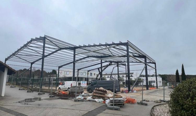 Les terrains de padel du complexe sportif prennent forme et le projet entre dans une phase décisive. La pose de la structure qui abritera les panneaux photovoltaïques avance à un rythme soutenu, confirmant la bonne dynamique du chantier.