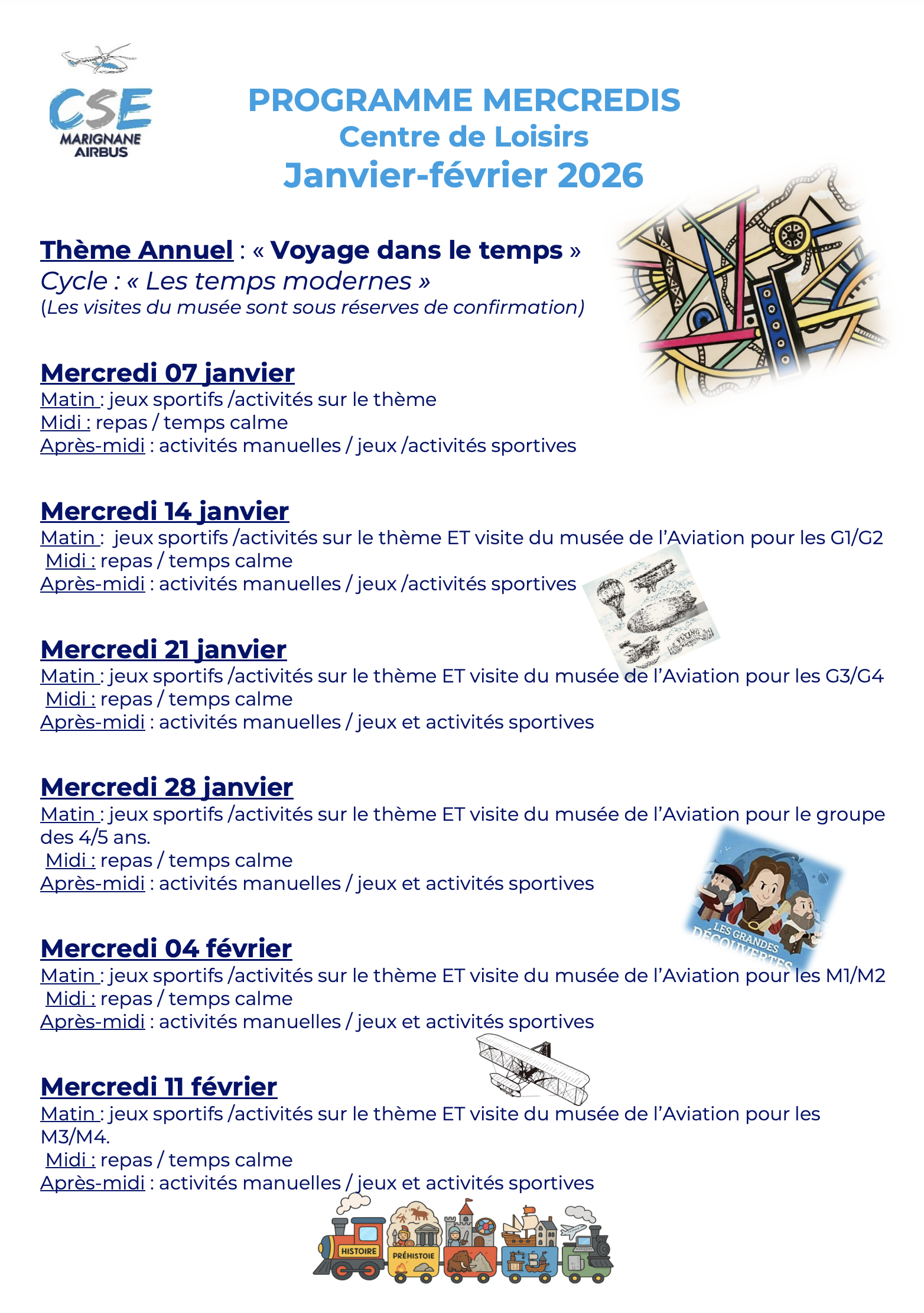 Les pré-inscriptions pour les mercredis de janvier et février 2026 sont officiellement ouvertes sur le site du CSE. Cette nouvelle édition transportera les enfants à travers les époques, avec un focus sur les temps modernes et leurs grandes inventions.