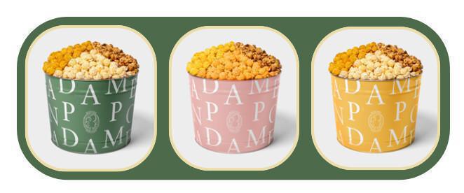 Nous vous proposons 3 couleurs de tins, chacune remplie de 7,57L de popcorn