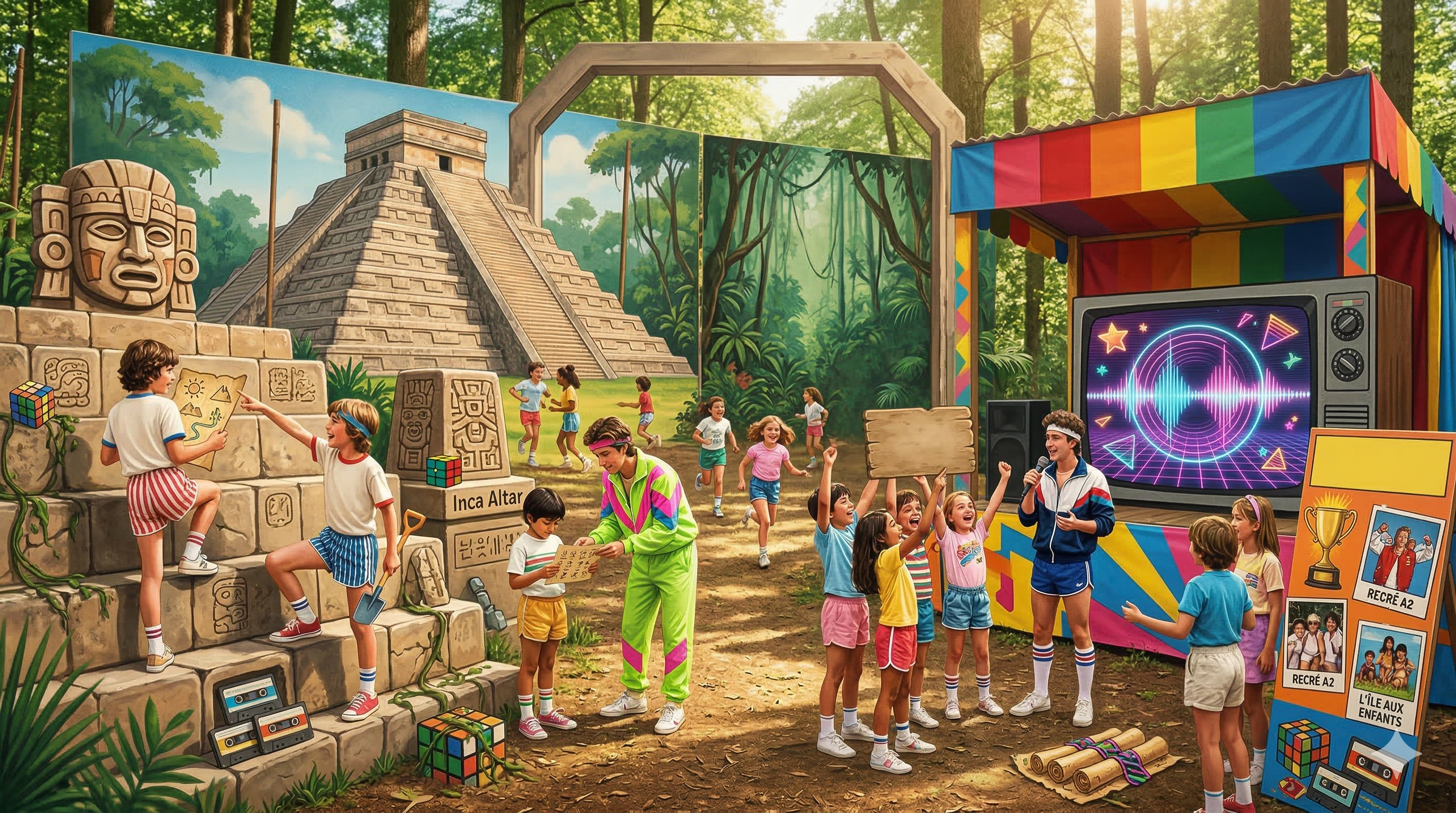 Les enfants partiront pour un voyage dans le temps à la recherche des civilisations perdues et à la découverte des années 80.