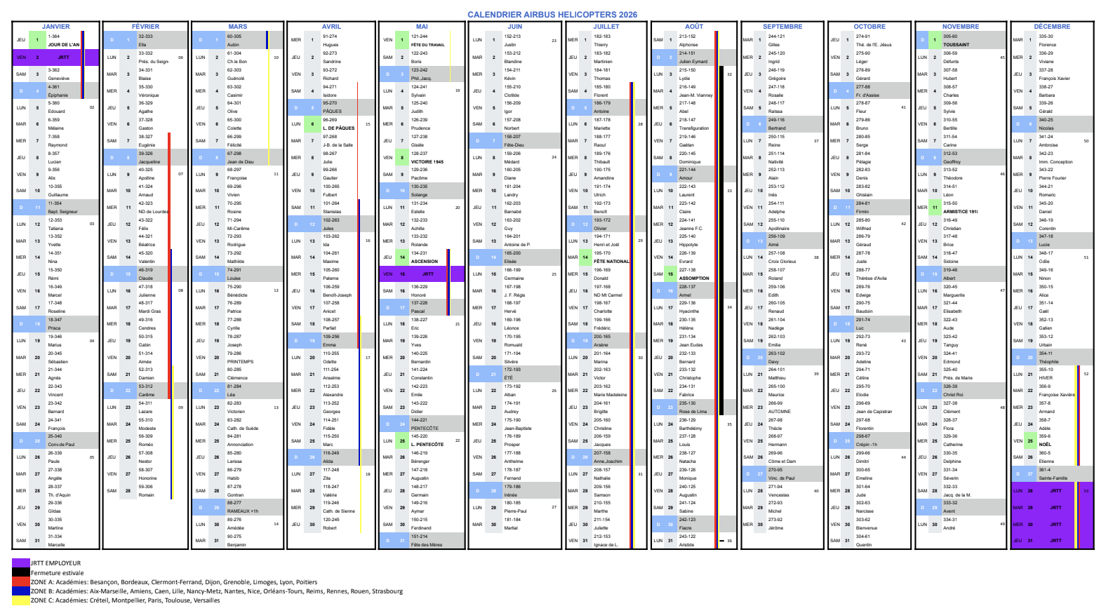 Six JRTTE collectifs sont fixés au 2 janvier et au 15 mai et la dernière semaine de décembre 2026.