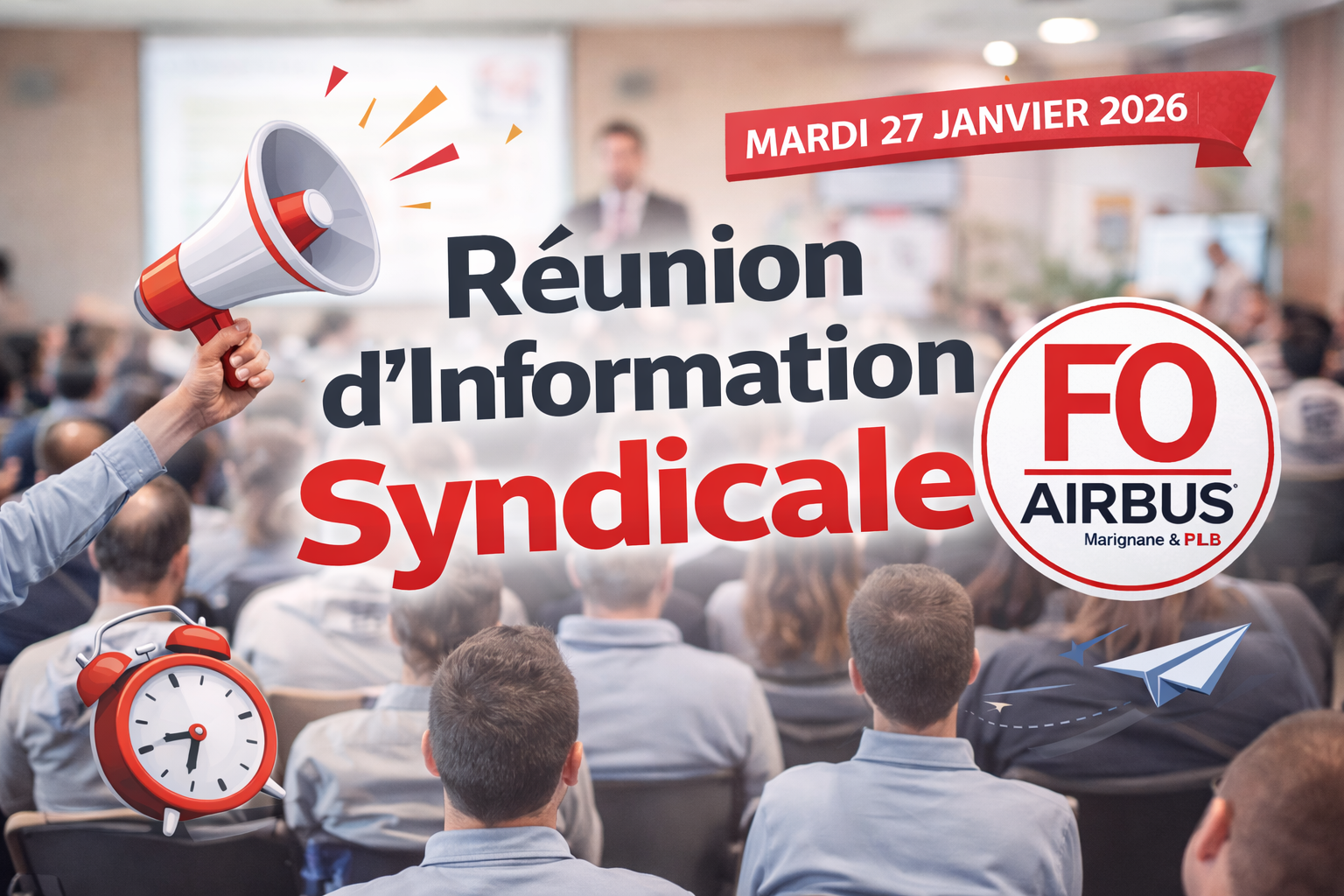 Nous vous informons que nous organisons une Réunion d’Information Syndicale le mardi 27 janvier 2026, de 09h30 à 11h00, au restaurant d’entreprise du bâtiment A11.